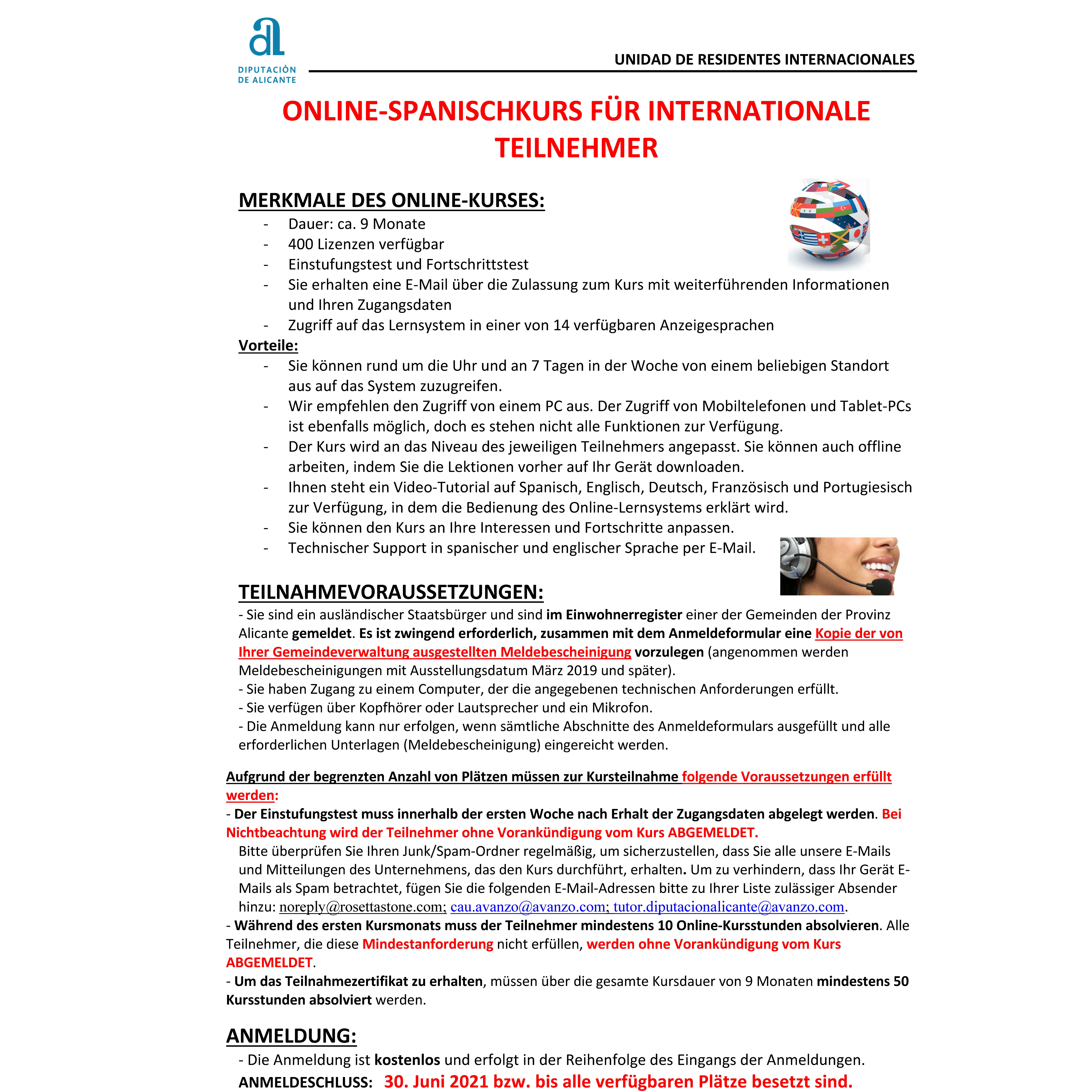 plazas disponibles para personas extranjeras residentes en nuestra provincia. Organizado por