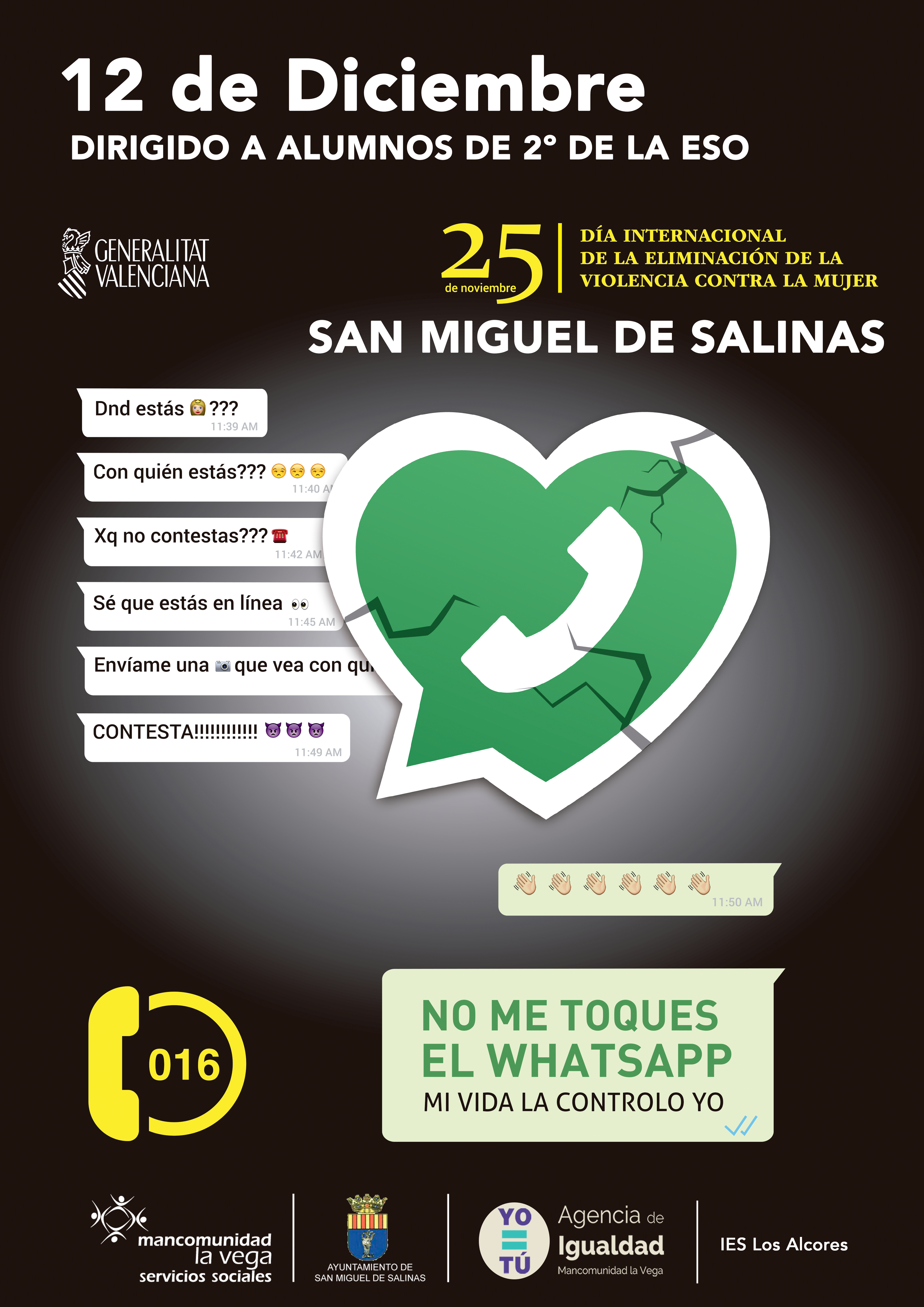 Talleres prevención violencia de género con alumnado de secundaria. No me toques el Whatsapp.