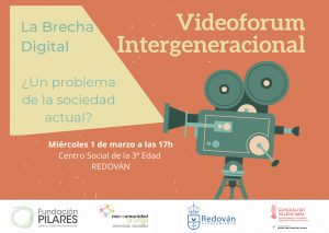 El próximo miércoles 1 de marzo a las 17:00 de la tarde en el Centro Social de la Tercera Edad de Redován tendrá lugar un videoforum sobre brecha digital. Se proyectarán vídeos sobre la relación de las tecnologías y las personas mayores dando paso a la tertulia a su término.